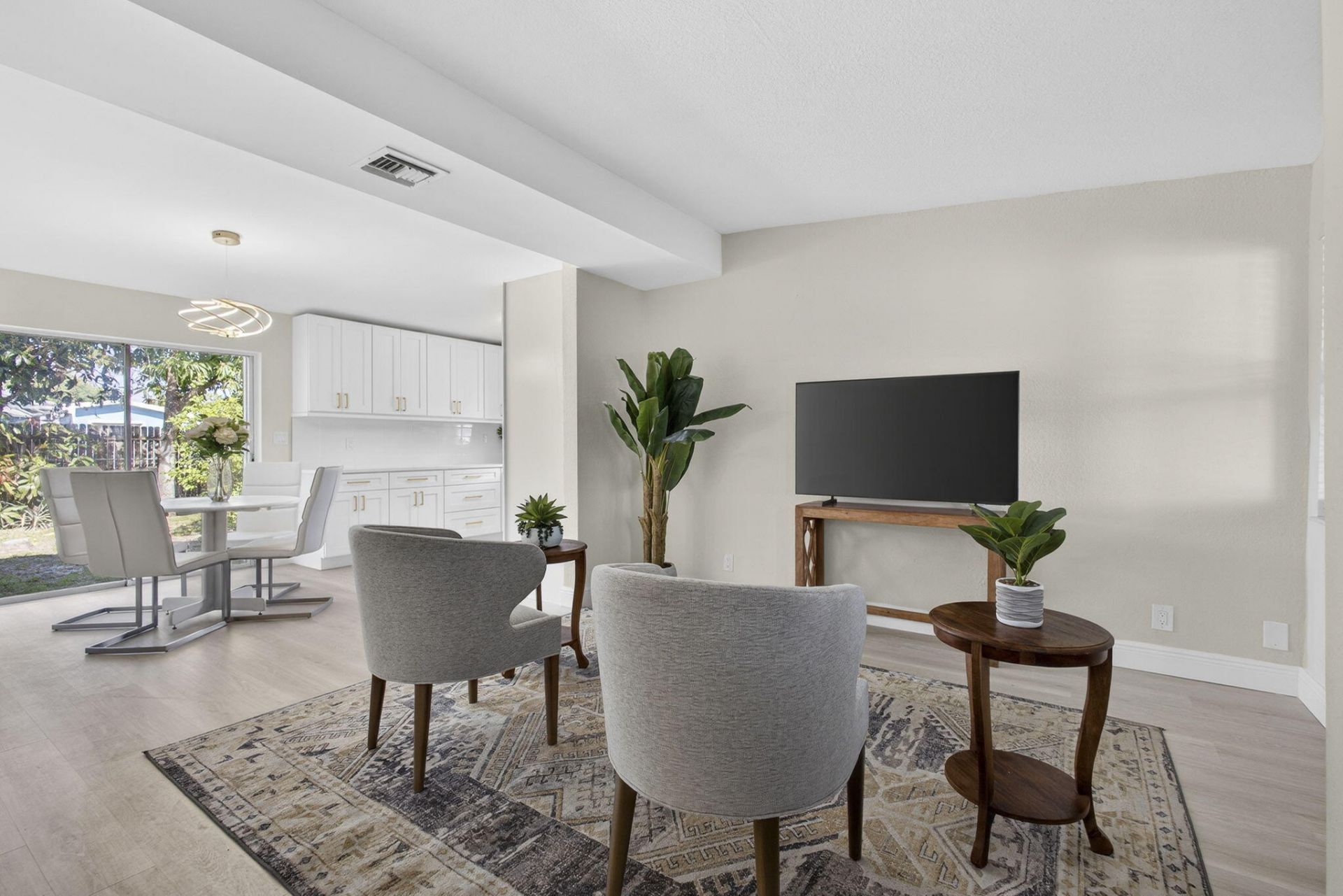 Renovated single-family home located in a desirable West Palm Beach neighborhood with no HOA. 3 bed 2 bath and a covered screened porch with large driveway. Recent upgrades include brand new kitchen with quartz, new fridge (arriving soon), a newer A/C system, accordion shutters, new flooring and just freshly painted. Large backyard for all your toys like a boat, trailer, RV. Gas in the houe Conveniently located near major roads and i95, shopping, dining, and schools, close to PBI.