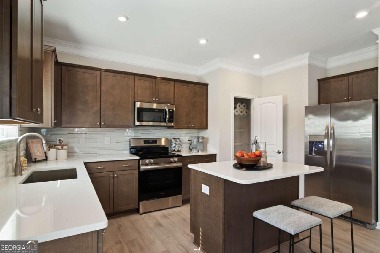 Kitchen: Breakfast Area, Kitchen Island, Pantry, Solid Surface Counters